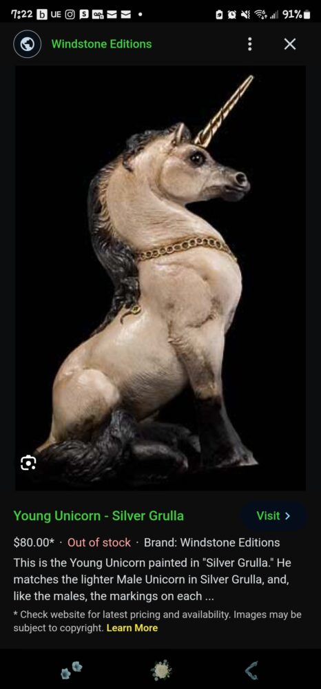 I am still searching for a Grulla grand unicorn! I have most of the family and need him to complete it 😁 willing to pay, please let me know if you have one you are willing to let go of. He would be much appreciated! Also looking for the young unicorn in Grulla as well.