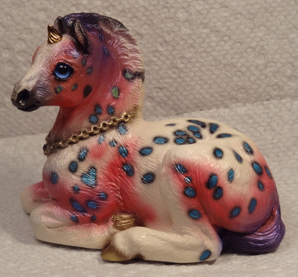 A beautiful green eyed fantasy appy with clear jewel. I like him very much and he looks pretty good with my Ice Lion (faced the other way in the pic so he doesn’t look like he is wanting uni lunch).