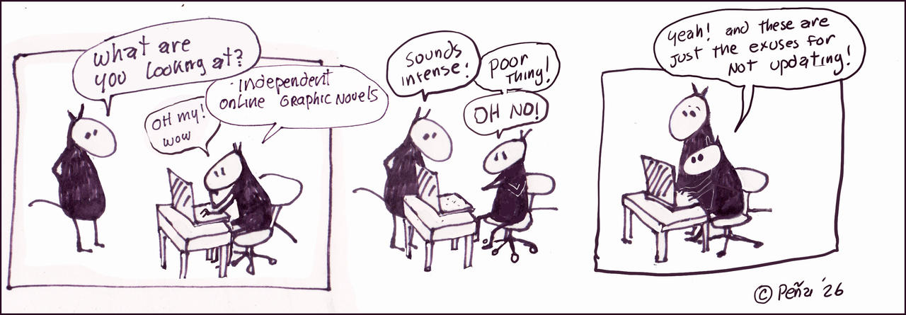 I think the “Fumes” name is because the drawings are done with a Sharpie and the slightly off-kilter point of view supposedly is inspired by Sharpie fumes. This one is more straightforward than most of them. 🙂