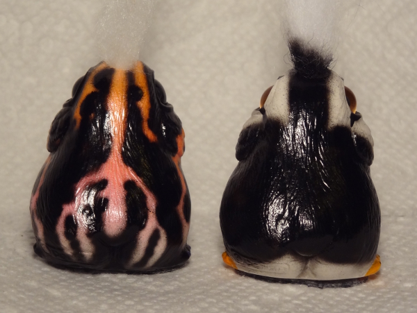 I got an orange and pink Hoppy Poad with black eyes, white tuft, and purple beak and toenails, and a Puffin inspired Tad!