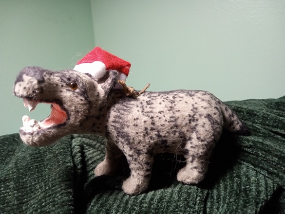 Here is one of the ugly hippos (I think) I found at Joanns last year, reimagined as a festive Andrewsarchus. They really didn’t cut it as hippos.