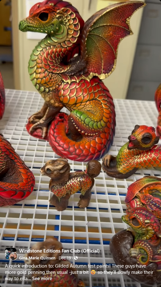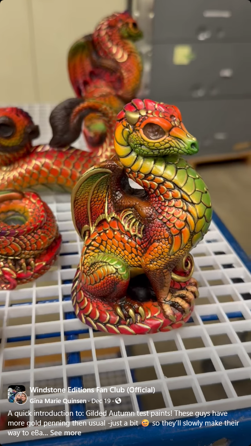 Gina says, “A quick introduction to: Gilded Autumn test paints! These guys have more gold penning then usual -just a bit 😉 so they’ll slowly make their way to eBay as I finish them. Finally the brown, speckled egg finally has a hatchling, I think I may have painted that egg my first year here 😳