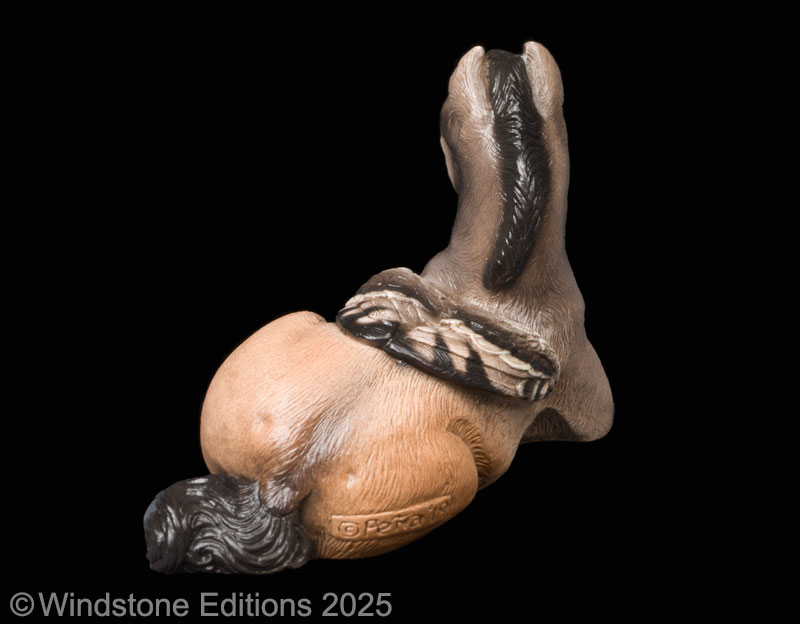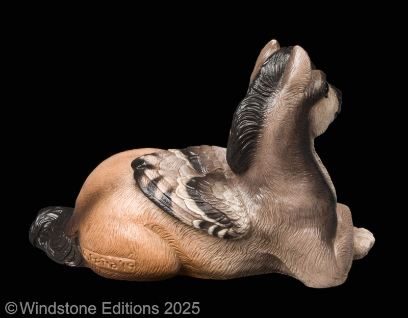 The Hippogriff Colt in natural browns, tans, grays, and creams, with light front paws and a dark mane, tail, beak and rear hooves. This colt has brown glass eyes. These are unsigned limited production. They are about 4 1/4 inches long.