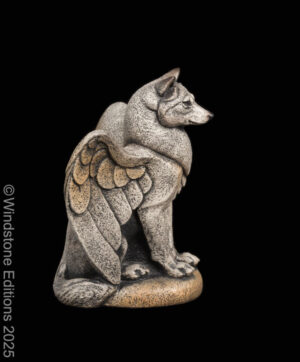 This windblown wolf has glass eyes that glow with candlelight. The back has a deep, secure hanging hole and is covered with a felt pad. Stone finish. Be sure to hang this sconce securely from a strong interior wall before use.